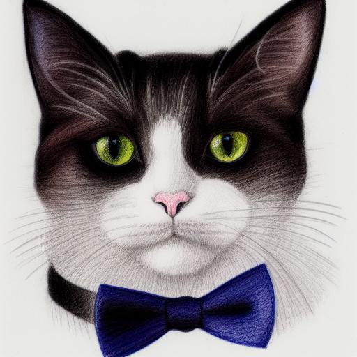 A crayon drawing of close up cat cat wearing a white small bow tie