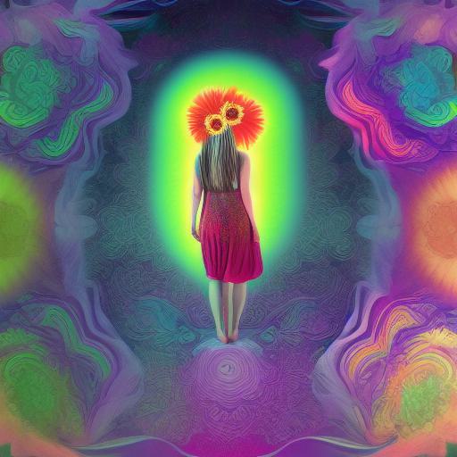 2. Subject: The prompt features a woman holding a laughing flower in her hand. This subject provides a focal point for the image and gives the AI model a clear visual element to incorporate into the painting.