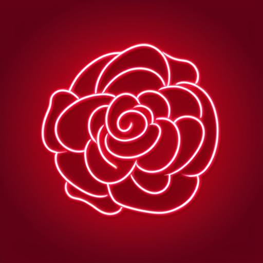 A flower neon sign on the wall