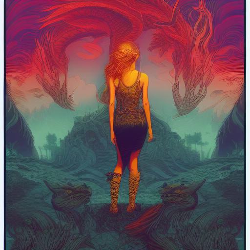 A girl that is standing in front of the dragons