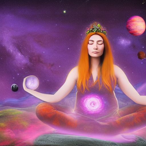By including these different components in the AI image prompt, the generator is able to create an image that is vibrant, psychedelic, and fantastical. The woman’s position on the rock, the details of the purple flower, and the way the stars and planets are arranged all contribute to the overall mood and feel of the image.