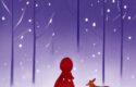 The first element, “a little girl with a red hood facing backward,” is a specific description of the main character in the image. The use of the color red in the hood helps to create a focal point in the image and draws the viewer’s attention to the girl.