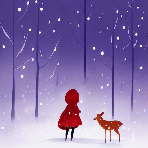 The first element, “a little girl with a red hood facing backward,” is a specific description of the main character in the image. The use of the color red in the hood helps to create a focal point in the image and draws the viewer’s attention to the girl.