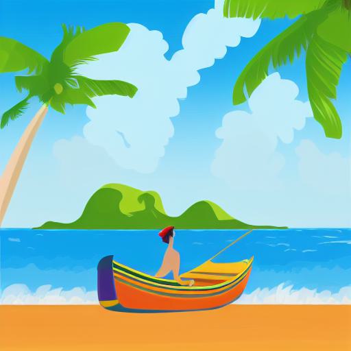 A man is sitting in a boat on beach