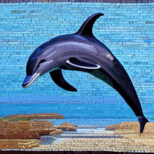 A mosaic of a dolphin in the costal inspired by Charles Ginner