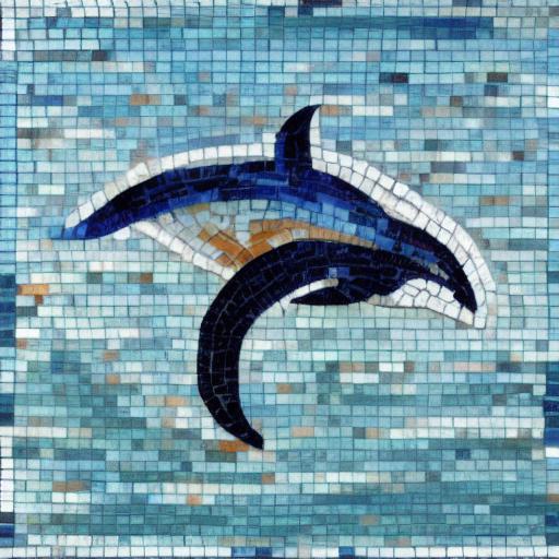 A mosaic of a dolphin swimming in the marine ocean inspired