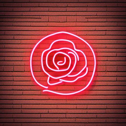 A one line flower neon sign on a brick wall