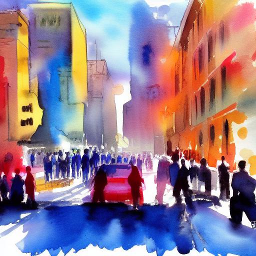 A painting of a city street with people