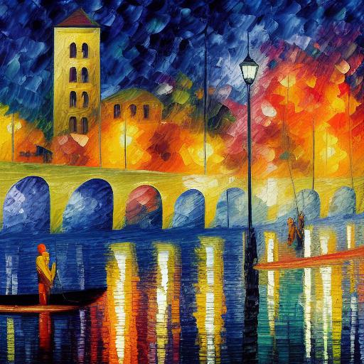 This AI image prompt is a combination of different elements that will influence the image being generated. The prompt is composed of a painting of a city with human fishing near the river, which sets the primary theme of the image. The use of pointillism painting style inspired by Leonid Afremov is also specified in the prompt, which means that the image will feature small, distinct dots of color that will create a vibrant and textured effect.