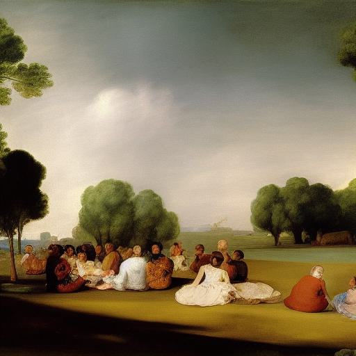 A painting of a group of people having picnic on the green land by Francisco de Holanda