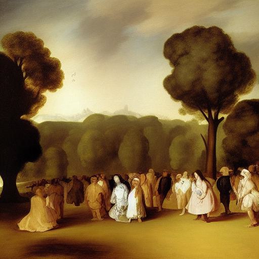 A painting of a group of people in a field with trees by Francisco de Holanda
