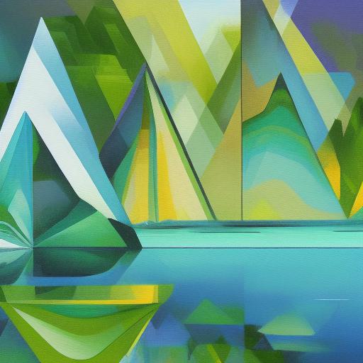 A painting of a lake with greenery in the background