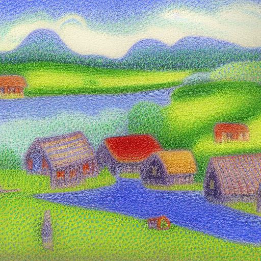 Firstly, the prompt specifies that the image is a painting of a river and house village. This gives the AI a clear direction for what type of scene to generate. The mention of a village also indicates that there may be multiple buildings in the image, and the reference to a river suggests that there will be a body of water included in the scene.