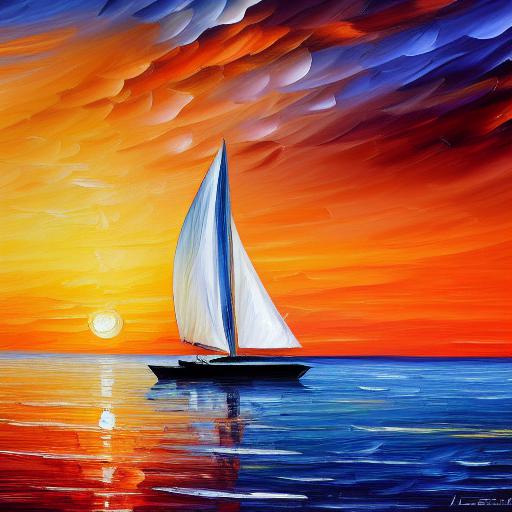 A painting of a sailboat at sunset