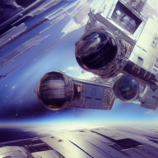 A painting of a space station in the background