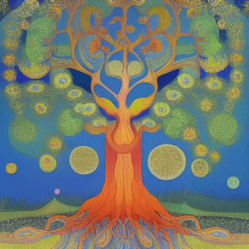Psychedelic art often features complex, repeating patterns, fractals, and other geometric shapes that seem to pulse and move. The images are often highly detailed and symmetrical, and they may feature mystical or spiritual themes, as well as references to nature, animals, and other elements of the natural world.