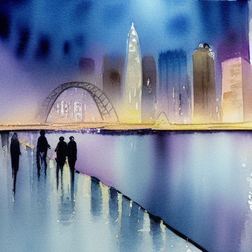 A painting of a view of a city at night