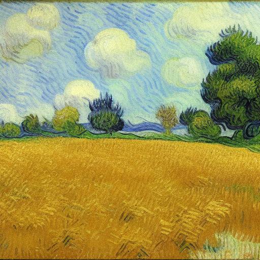 A painting of a wheat field with trees
