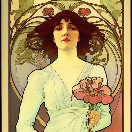 A painting of a woman holding flowers