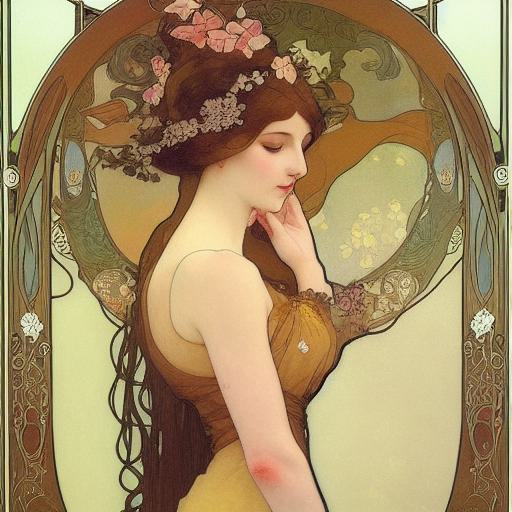 The mention of “Alphonse Mucha” invokes the spirit of this renowned artist, prompting the AI image generators to imbue the artwork with the characteristic aesthetics associated with Mucha’s work. The flowing lines, intricate detailing, and balanced proportions are all elements that pay homage to Mucha’s artistic legacy, resulting in a visually captivating representation.