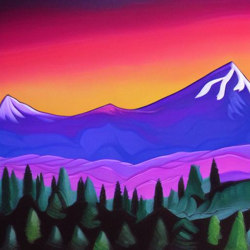 A painting of mountain and trees