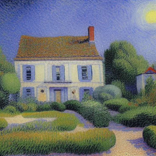 A painting of the house in the garden