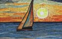 A painting of the sailboat on the water