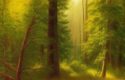 About A painting of trees and green plants in a forest
