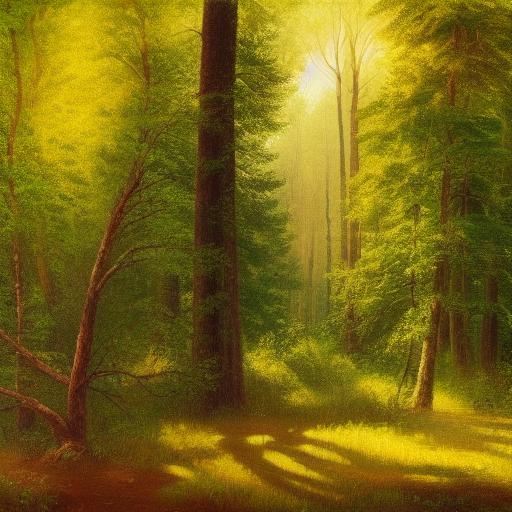 The mention of great light and shadows is another critical aspect of the prompt. This element will guide the AI model in creating an image that reflects the interplay between light and shadow in a forest setting.