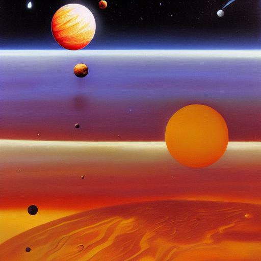A painting of various planets in space
