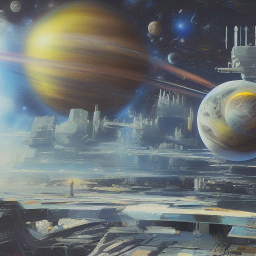 A painting of with planets in the space in the background