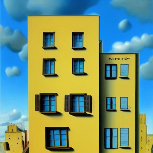 A painting on the side of a building and a blue sky