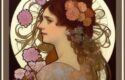 Alphonse Mucha‘s influence permeates throughout the image, as the art nouveau style takes center stage. Characterized by its ornate patterns, sinuous lines, and organic forms, art nouveau captures the essence of beauty and harmony in nature. The painting pays homage to Mucha’s signature aesthetic, combining intricate detailing and flowing lines to create a mesmerizing visual experience.