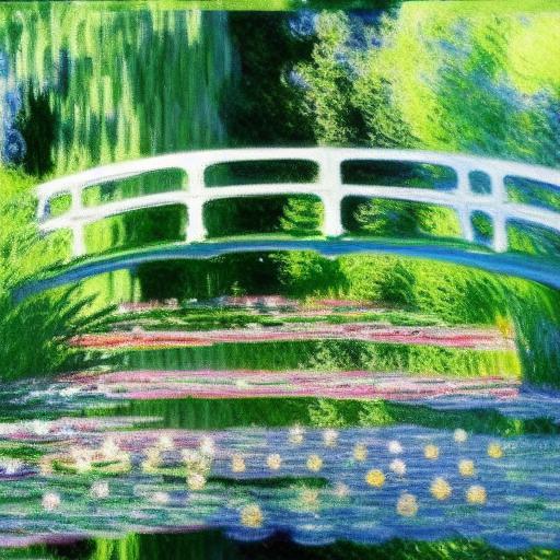 A romantic painting of a pond filled with water lilies