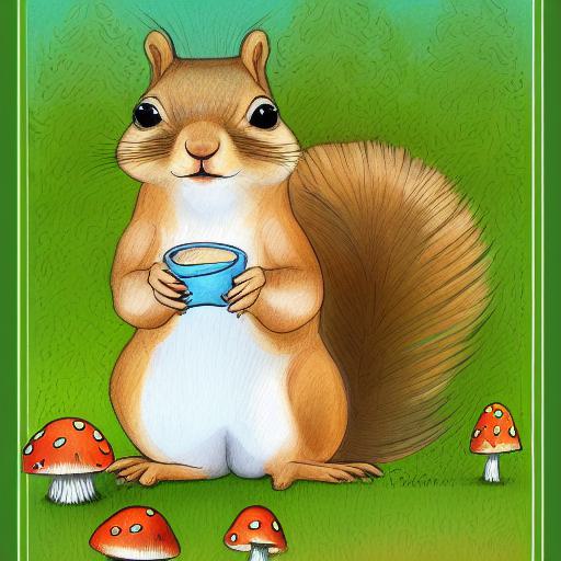 A squirrel and a mushroom
