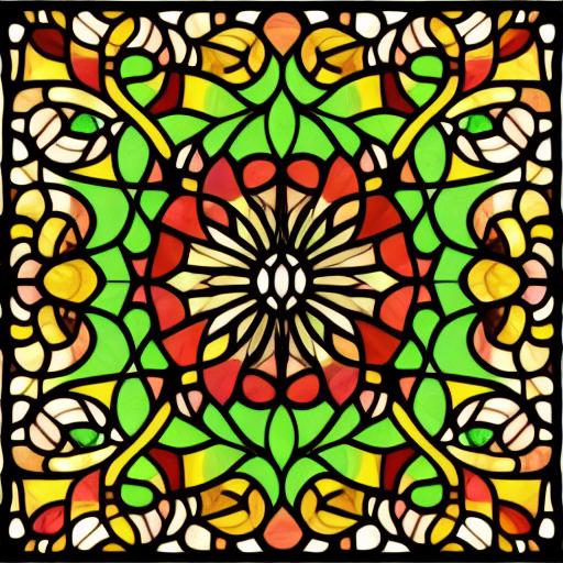 A stained glass picture of flower patterns