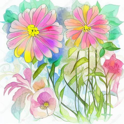 A watercolor drawing of bright flowers on a white background inspired by Esteban Vicente