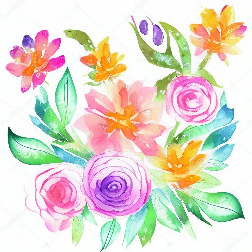 A watercolor drawing of colorful flowers on a white background inspired by Esteban Vicente