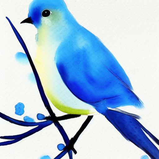 A watercolor painting of a blue bird with branch inspired by Paul Bird