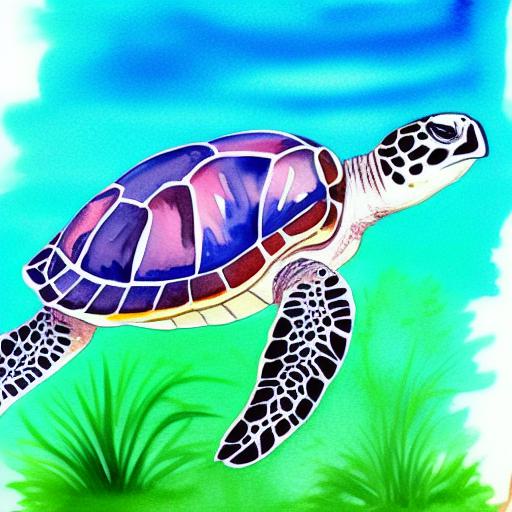 A watercolor painting of a sea turtle by Jennifer Janesko