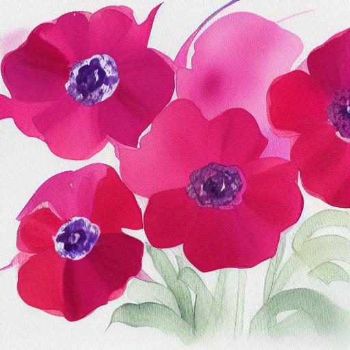 The fourth part of the prompt is “watercolor painting style.” This suggests that the generated image should be created using watercolors, a medium known for its soft, translucent colors and delicate textures. This can help create a sense of lightness and delicacy in the image, emphasizing the natural beauty and intricacy of the flowers.