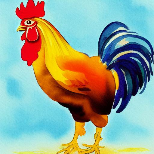 A watercolor painting of the rooster