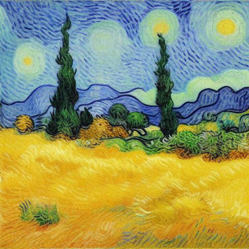 The prompt begins by identifying the subject matter of the image as “a wheatfield with cypress trees,” which immediately sets the tone and atmosphere for the artwork. The inclusion of “an impressionist painting by Van Gogh” further adds a layer of specificity to the prompt, indicating the desired style of the artwork. This is crucial in generating an AI-generated image that is consistent with the intended aesthetic.