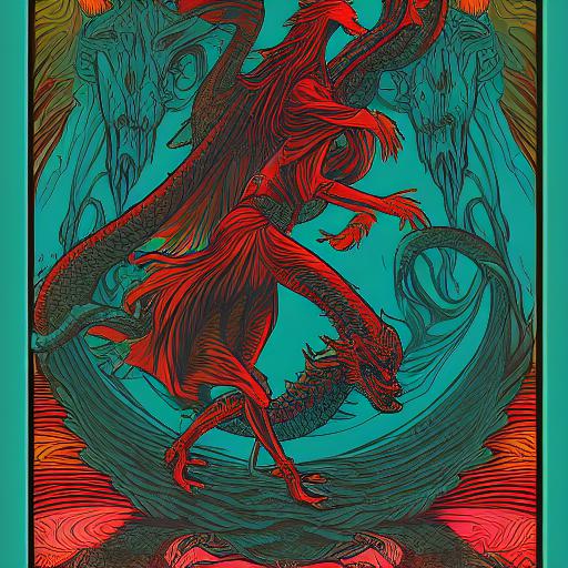 A woman that is walking with a dragon