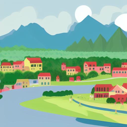 The first element in the prompt is the subject matter – an illustration of a town with houses and mountains. This gives the AI a clear idea of what the image should depict, and it sets the stage for the rest of the design. The town, houses, and mountains are all important elements that will be featured in the final artwork.