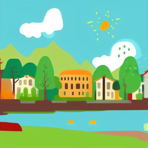 An illustration of a town with nature scene