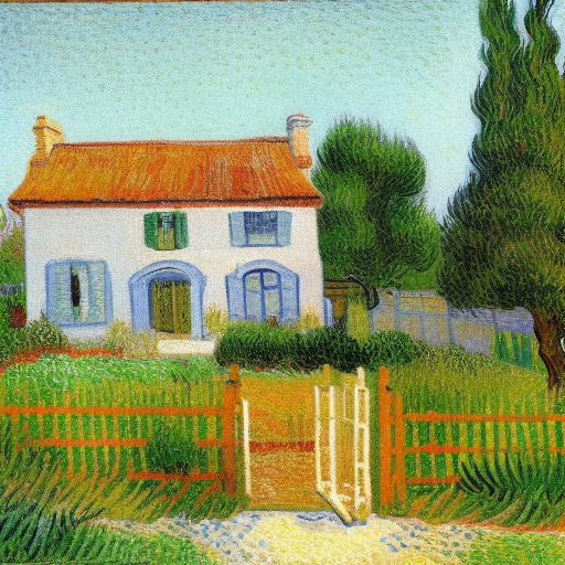 An impressionism painting of the house with garden