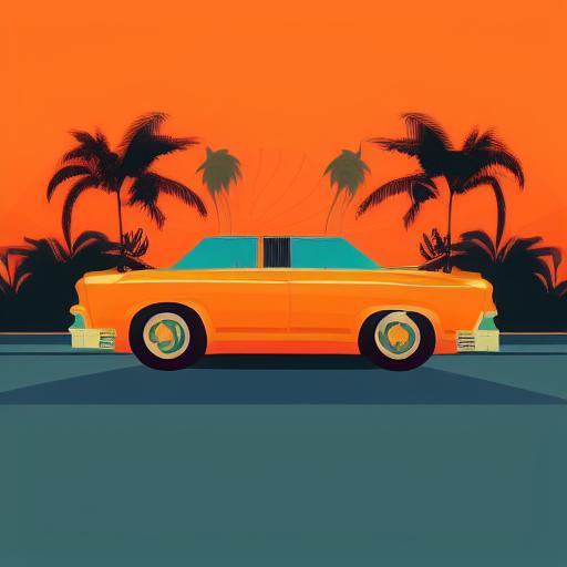Firstly, the prompt states that the image should be “an orange car with palm trees”. This description gives the AI a specific subject matter to work with and sets the scene for the image. The use of the color orange provides a clear indication of the dominant color scheme for the image, which helps guide the AI’s choices when selecting complementary colors and creating a cohesive visual aesthetic.