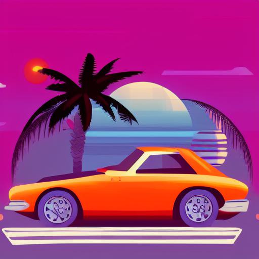 Art of an orange car with palm trees
