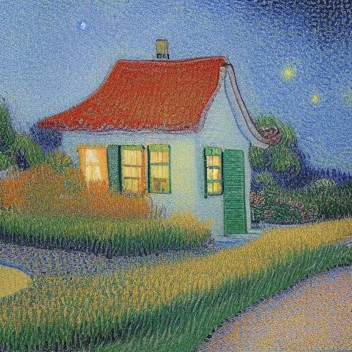 Art painting of one house in garden